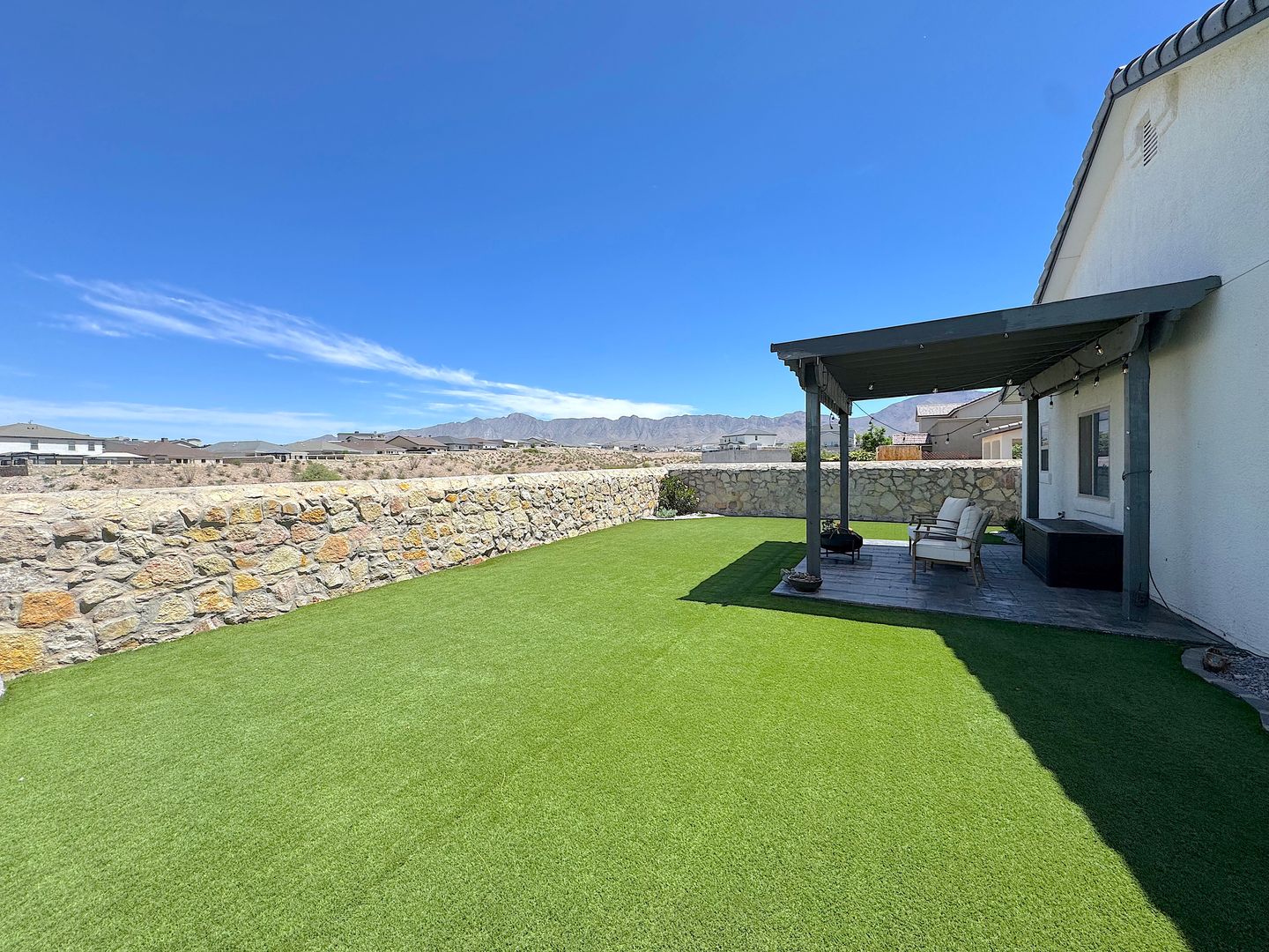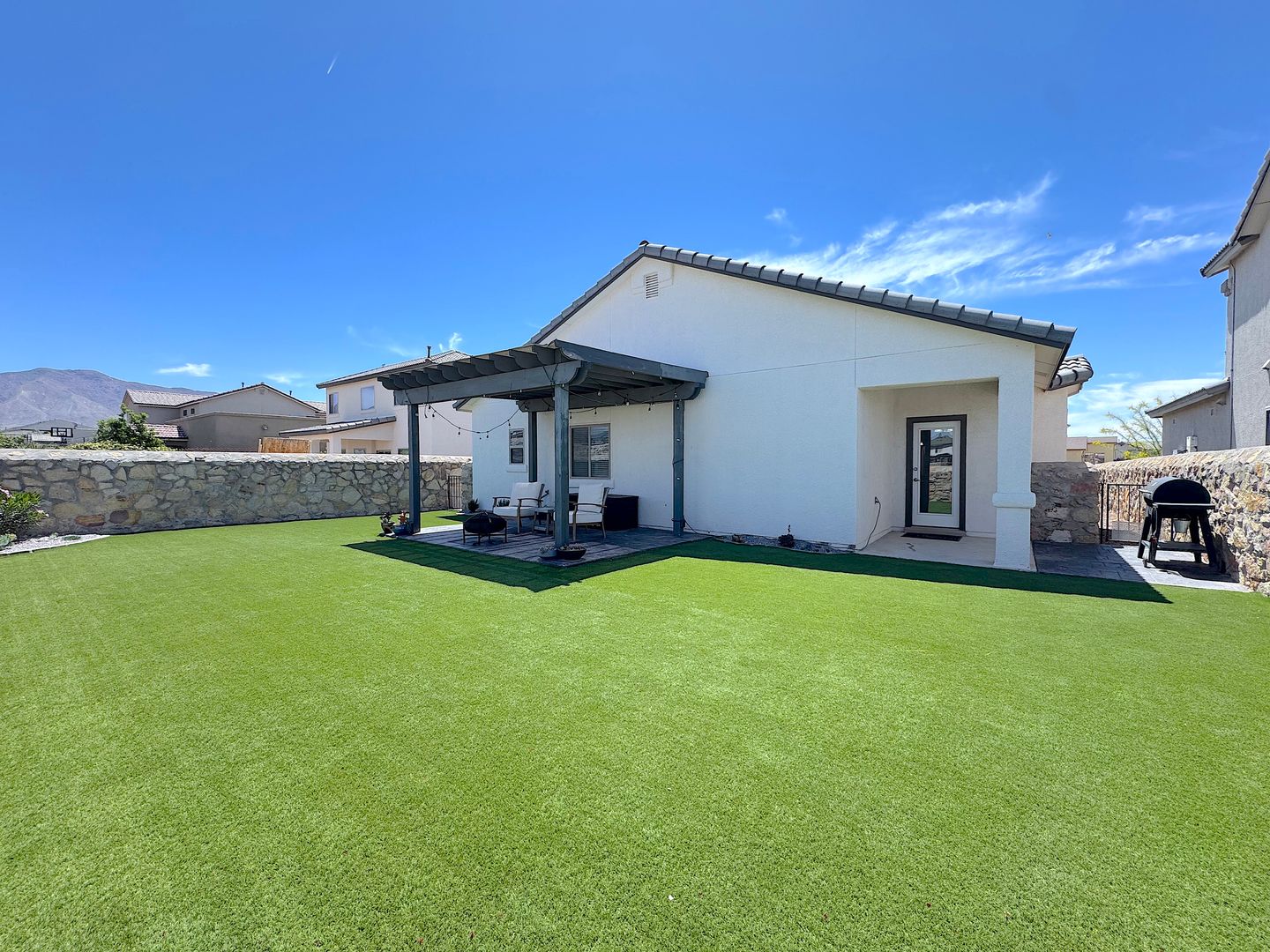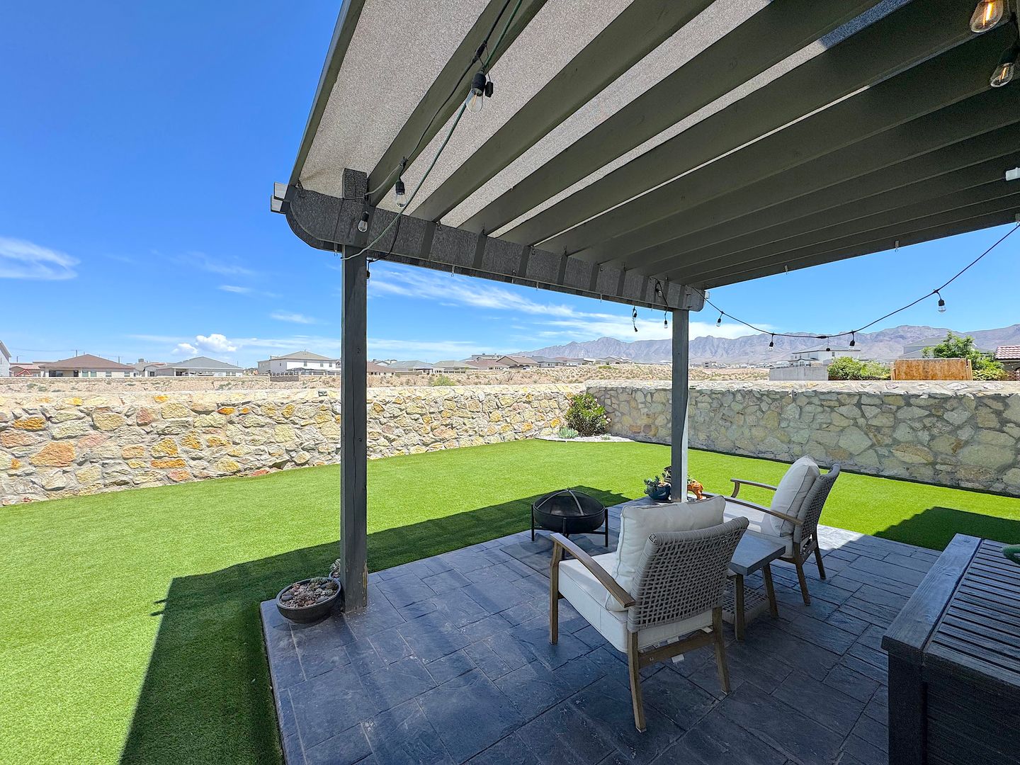 Stunning single story 4 bed/2 bath refrig a/c home located in the Enchanted Hills neighborhood. Entry way flows into the large open living areas. The gorgeous kitchen features a breakfast bar, custom backsplash, stainless steel appliances, pantry and overlooks the dining area and spacious living room. Head out back which is perfect for family night or entertaining with covered patio with synthetic grass, pergola with cafe lights and absolute breathtaking views of the Franklin Mountains. Residents are enrolled in the Resident Benefits Package (RBP) which includes liability insurance, credit building to help boost the resident’s credit score with timely rent payments, up to $1M Identity Theft Protection, HVAC air filter delivery (for applicable properties), move-in concierge service making utility connection and home service setup a breeze during your move-in, our best-in-class resident rewards program, and much more!