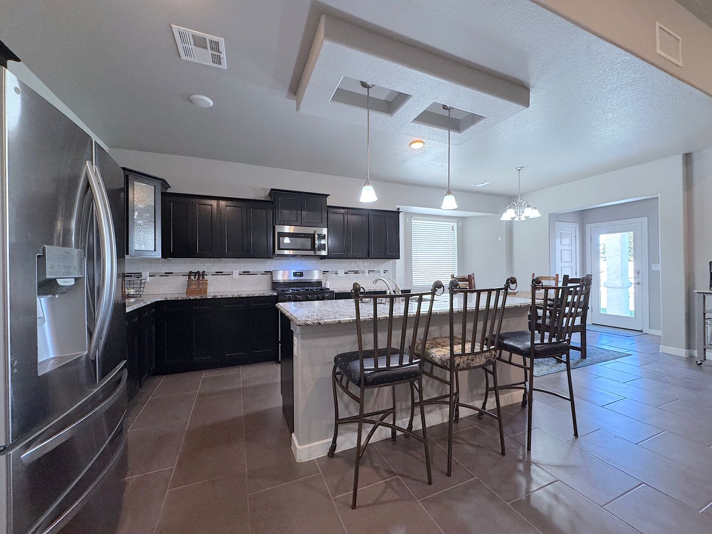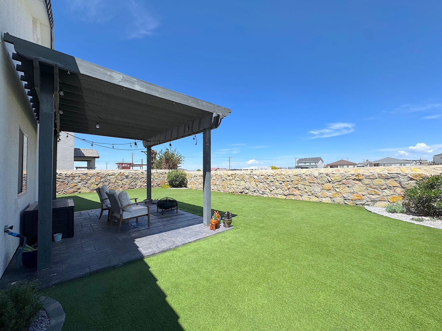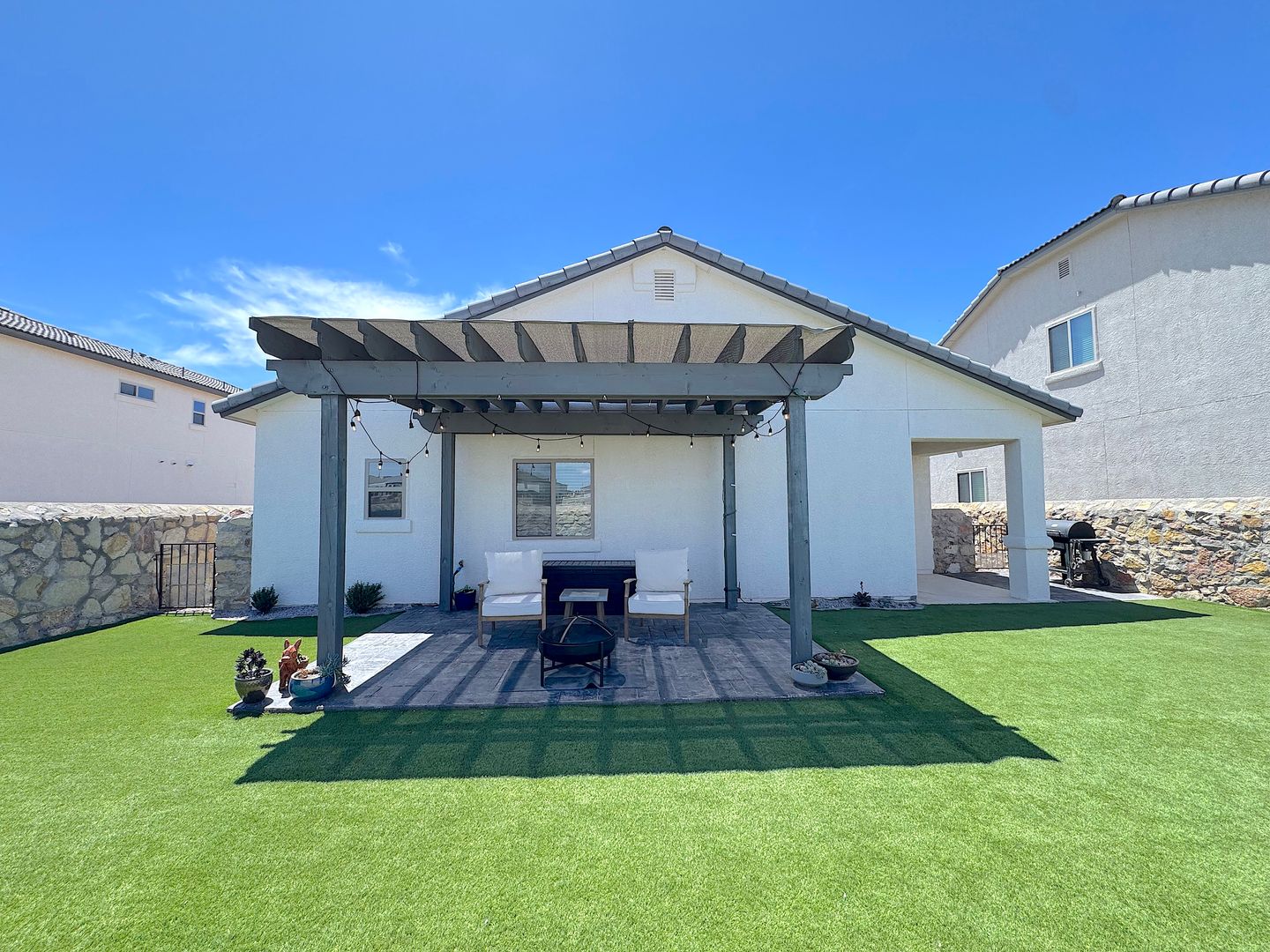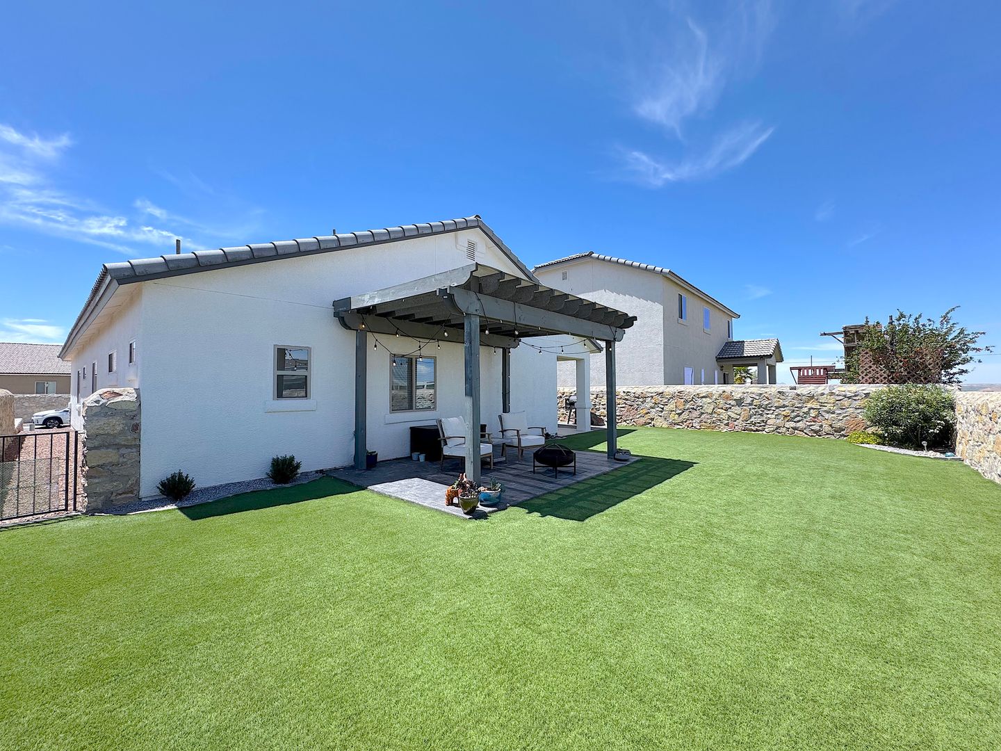 Stunning single story 4 bed/2 bath refrig a/c home located in the Enchanted Hills neighborhood. Entry way flows into the large open living areas. The gorgeous kitchen features a breakfast bar, custom backsplash, stainless steel appliances, pantry and overlooks the dining area and spacious living room. Head out back which is perfect for family night or entertaining with covered patio with synthetic grass, pergola with cafe lights and absolute breathtaking views of the Franklin Mountains. Residents are enrolled in the Resident Benefits Package (RBP) which includes liability insurance, credit building to help boost the resident’s credit score with timely rent payments, up to $1M Identity Theft Protection, HVAC air filter delivery (for applicable properties), move-in concierge service making utility connection and home service setup a breeze during your move-in, our best-in-class resident rewards program, and much more!